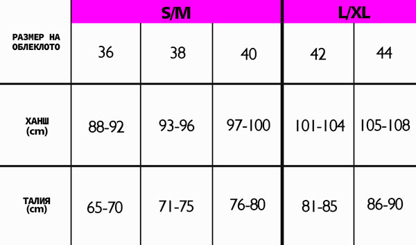 ТАБЛИЦИ ЗА РАЗМЕРИ