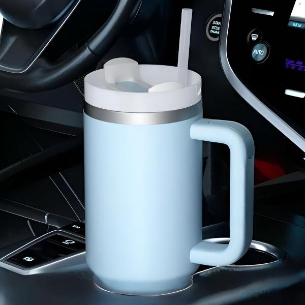 Край на мокрите чанти или седалки в колата. С херметичен капак и сигурен отвор за сламка, можете спокойно да я хвърлите в раницата си или да я държите на бюрото си.