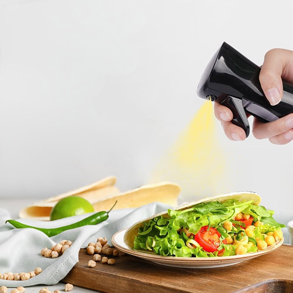 Оборудван с иновативен дозиращ механизъм, FLAVORMIST позволява прецизен контрол върху количеството на разпръскваната течност. Тази функция е особено полезна в кухнята, позволявайки ви ефективно да управлявате употребата на масло, насърчавайки по-здравословно готвене чрез намаляване на ненужните мазнини и калории.