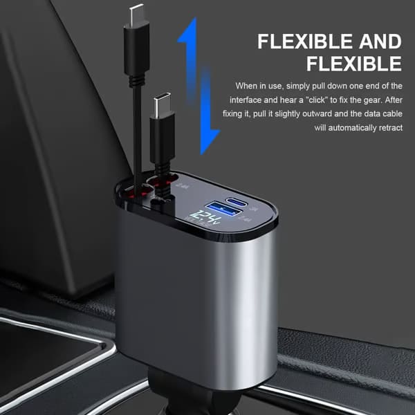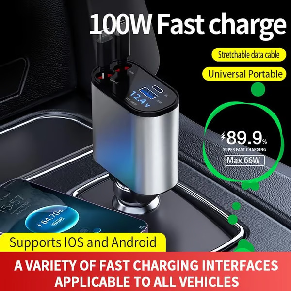 Компактният размер на зарядното устройство гарантира, че то се вписва безпроблемно във всеки автомобил, осигурявайки лесен достъп без да заема излишно място.