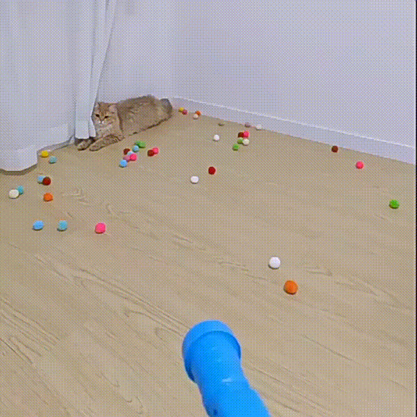 Пистолетът за топки е лесен за използване – просто издърпайте лоста, заредете топката и натиснете бутона, за да я изстреляте. Подходяща за игра на закрито, тя осигурява безкрайно забавление за вашата котка, дори когато не сте наблизо.