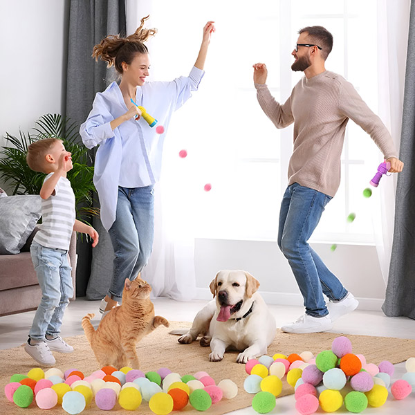 С ярките си цветове тези плюшени топки привличат вниманието на котката ви, правейки времето за игра по-вълнуващо. Наблюдавайте как котката ви се потапя изцяло в света на цветното забавление, което я държи ангажирана с часове.