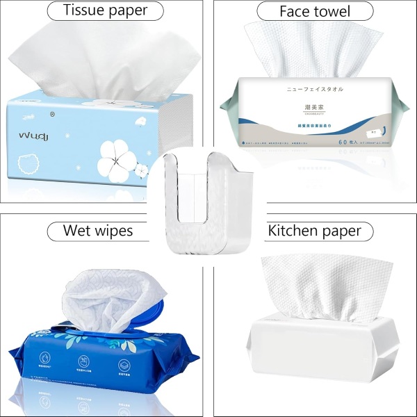 Плъзгащият се механизъм подава по една кърпичка без късане или заплитане. Съвместим с бебешки кърпички, почистващи кърпички и кърпички за лице – всяка марка, всеки пакет.