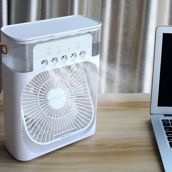 Този преносим климатик съчетава вентилатор, климатик, аромадифузер, нощна лампа и овлажнител в едно устройство, като осигурява целогодишен комфорт във всяко пространство.