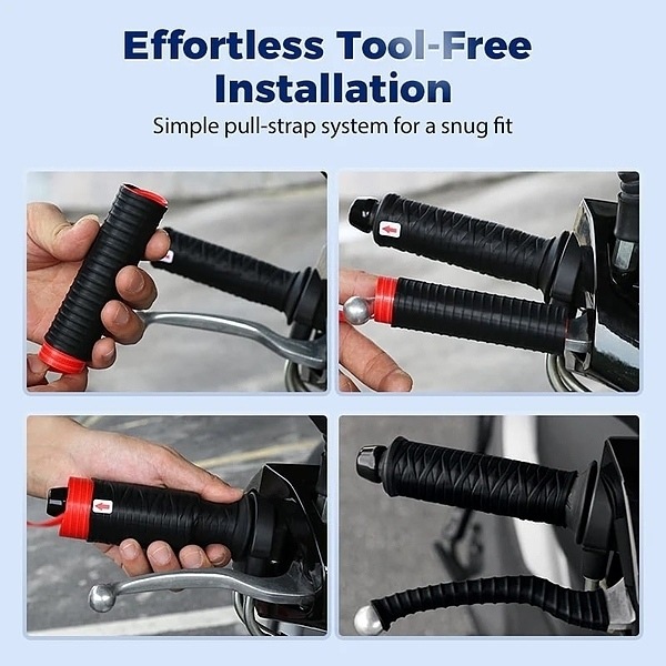 Просто издърпайте вътрешната поддържаща лента, за да пристегнете ръкохватката плътно върху кормилото за секунди.
