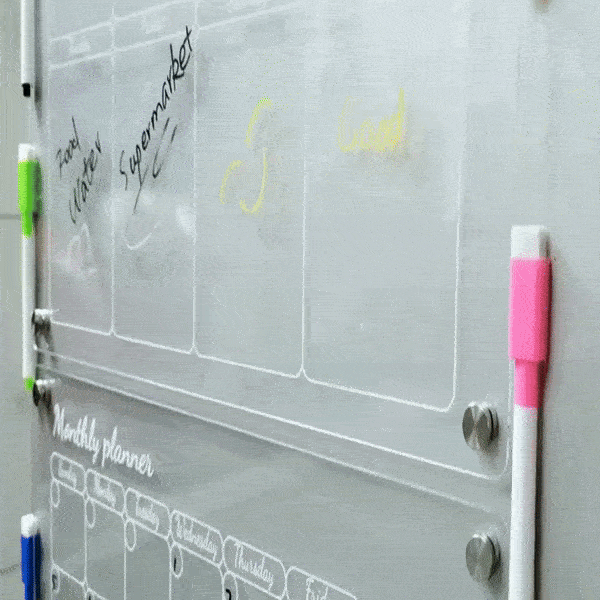 Неговият елегантен, прозрачен акрилен дизайн не само добавя модерно докосване към вашата кухня, но и предлага ефективен начин за управление на ежедневните ви дейности.