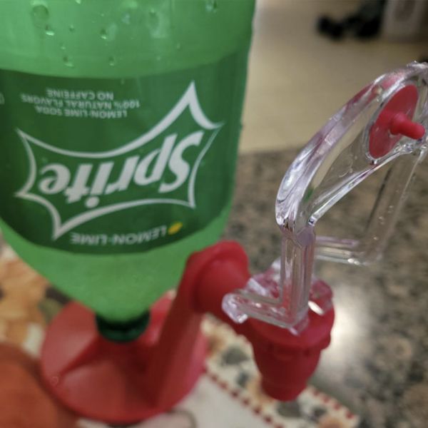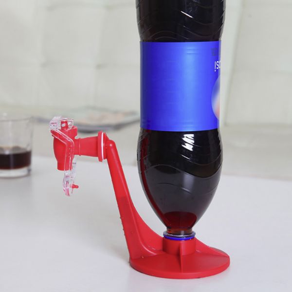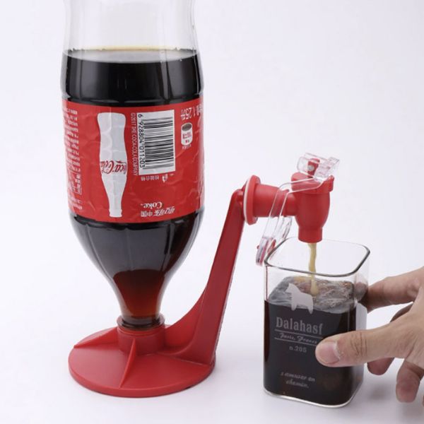 Бавно и стабилно завийте гумения накрайник върху желаната бутилка с напитка и след това бавно я обърнете обратно. Поставете чашата под чучура, от който излиза напитката, и я преместете към прозрачната дръжка. Това ще накара напитката да потече в чашата ви. Когато чашата се напълни, я издърпайте и чучурът ще се затвори автоматично.